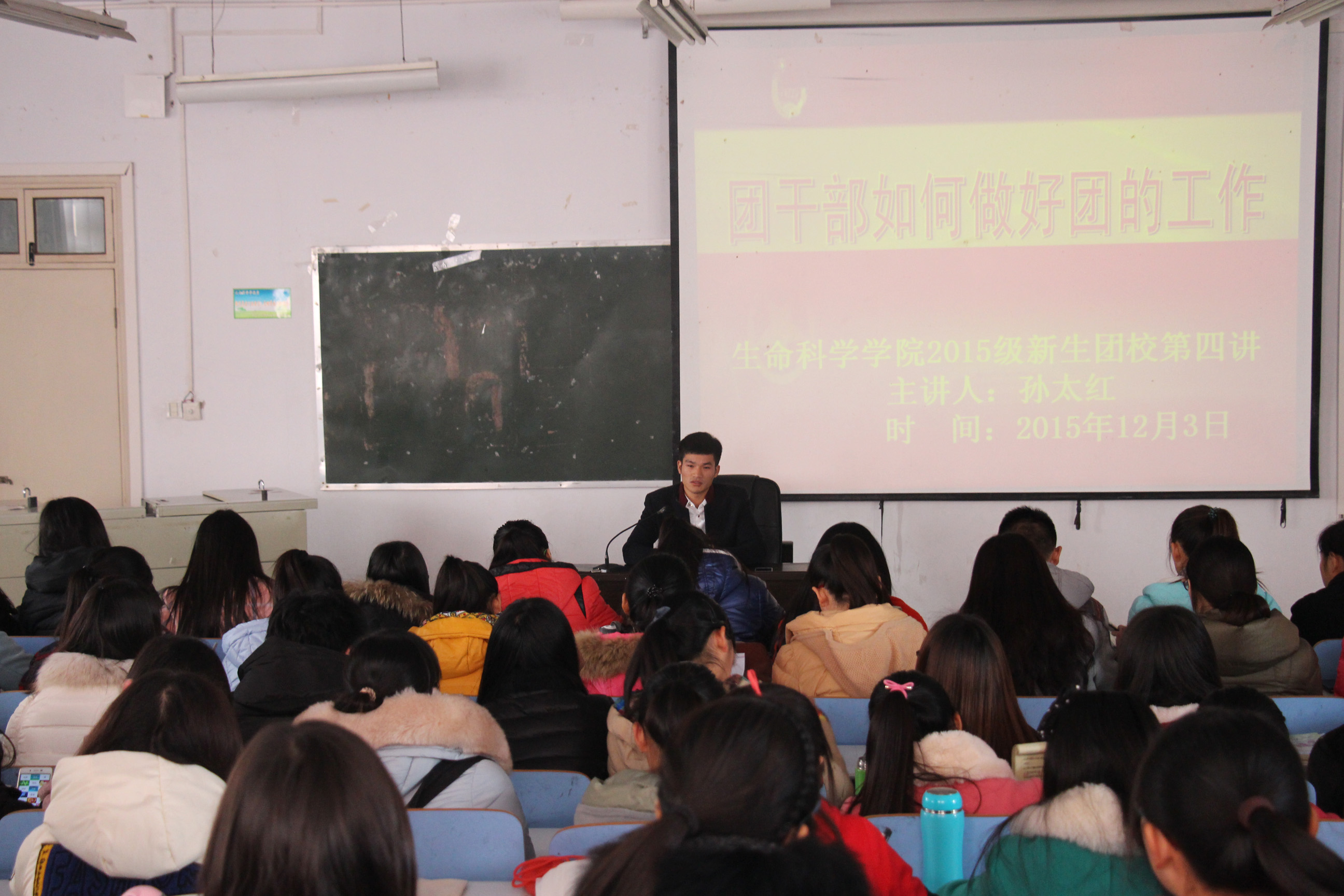团聚心得路,携手共成长。12月3日,云顶4008登录于生物楼414教室成功开展2015级新生团校第四讲,该次报告的主题为“团干部如何做好团的工作”。云顶4008登录团总支书记孙太红担任主讲人,该院团总支学生会全体新生团干部共同聆听了报告会。