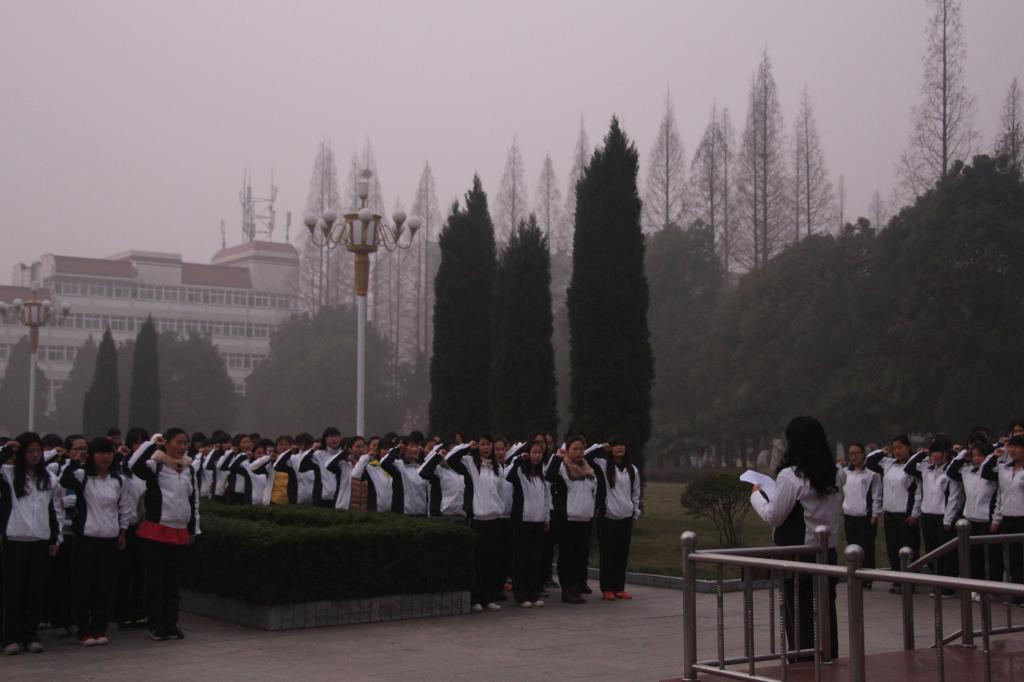 晨雾褪去,却褪不去同学们浓烈的爱国热情。清晨,同学们身着校服,整齐划一,精神抖擞地在升旗台前列队等候。6点30分整,国旗护卫队队员保持方阵队形,伴着嘹亮的口号,齐步前进,升旗仪式正式开始。国歌奏响,五星红旗随风飘扬,冉冉升起,同学们庄严肃立,行注目礼。仪式结束后,2015级学生代表李梁玉做了以《爱祖国,爱雷锋》为题的国旗下讲话。她指出,三月,是一个甘于奉献,服务他人的“雷锋月”。当代大学生应当学习雷锋精神,甘愿做一颗“螺丝钉”,为祖国建设贡献力量。最后,李梁玉带领全体学生宣誓《我们是雷锋精神传人》。