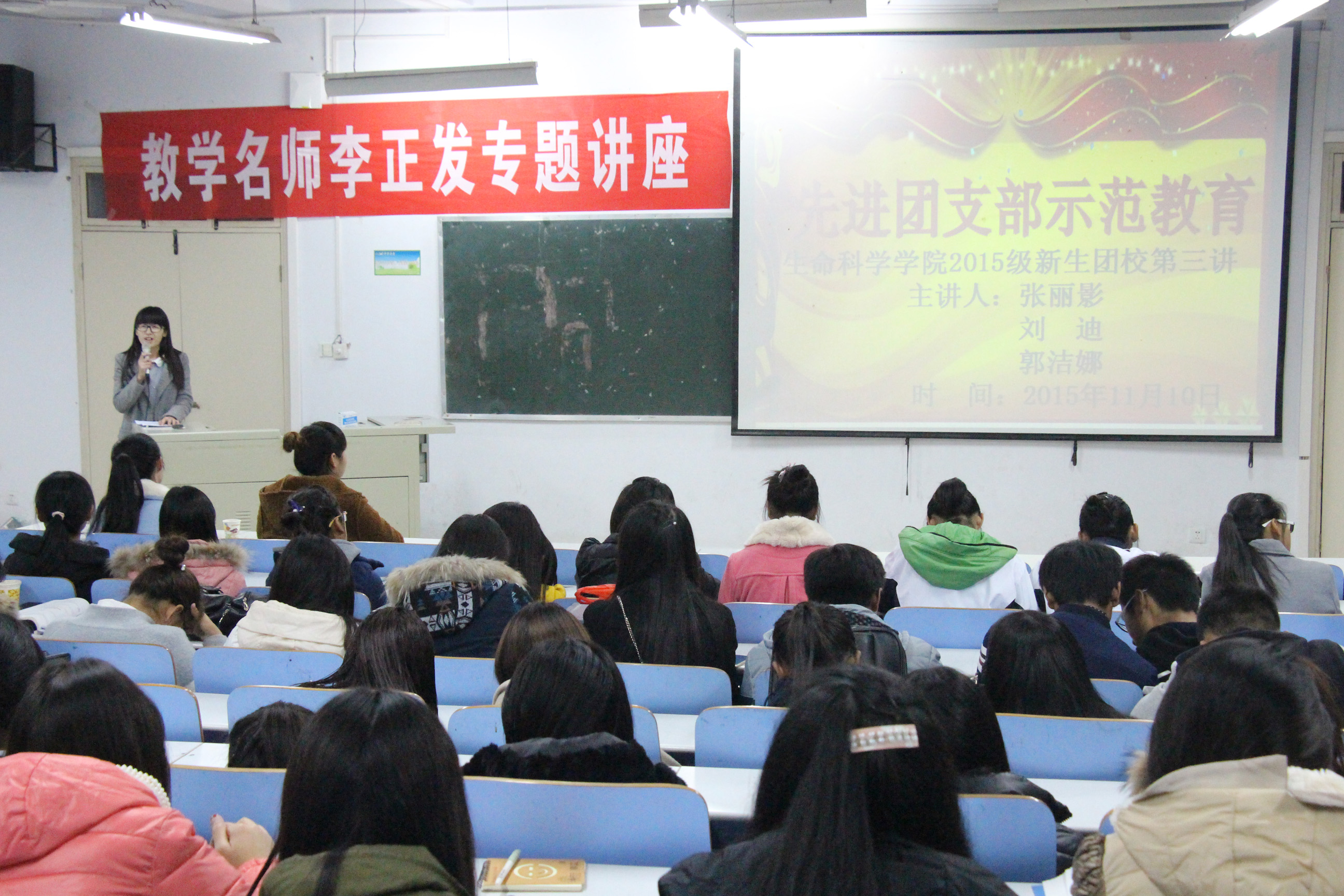 11月10日晚,云顶4008登录2015级新生团校第三讲暨先进团支部示范教育报告会于生物楼414教室成功开展。团总支副书记张丽影及十佳团支书刘迪、郭洁娜应邀担任本次报告会的主讲人,云顶4008登录2015级全体新生团干部聆听了本次报告会。