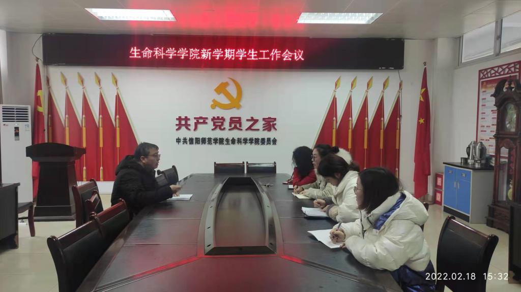 为切实做好常态化疫情防控工作,安排新学期开学各项工作,确保春季开学各项工作的有序开展,2月18日下午,我院于生科楼412召开新学期学生工作会议,会议由学院党委副书记荣宪举主持,全体辅导员参加本次会议。