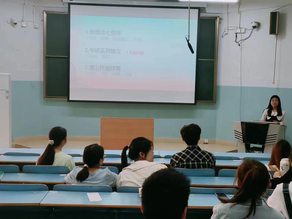 4月18日,我院新媒体中心于教九305召开例会,会议由新媒体中心指导老师朱晓雯,新媒体中心主任王丁奕共同主持,新媒体中心全体成员参加。
