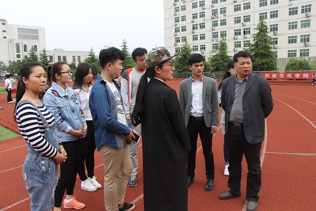 4月12日,我院党委副书记赵东及团总支书记孙太红看望慰问健美操队员,为她们加油打劲。