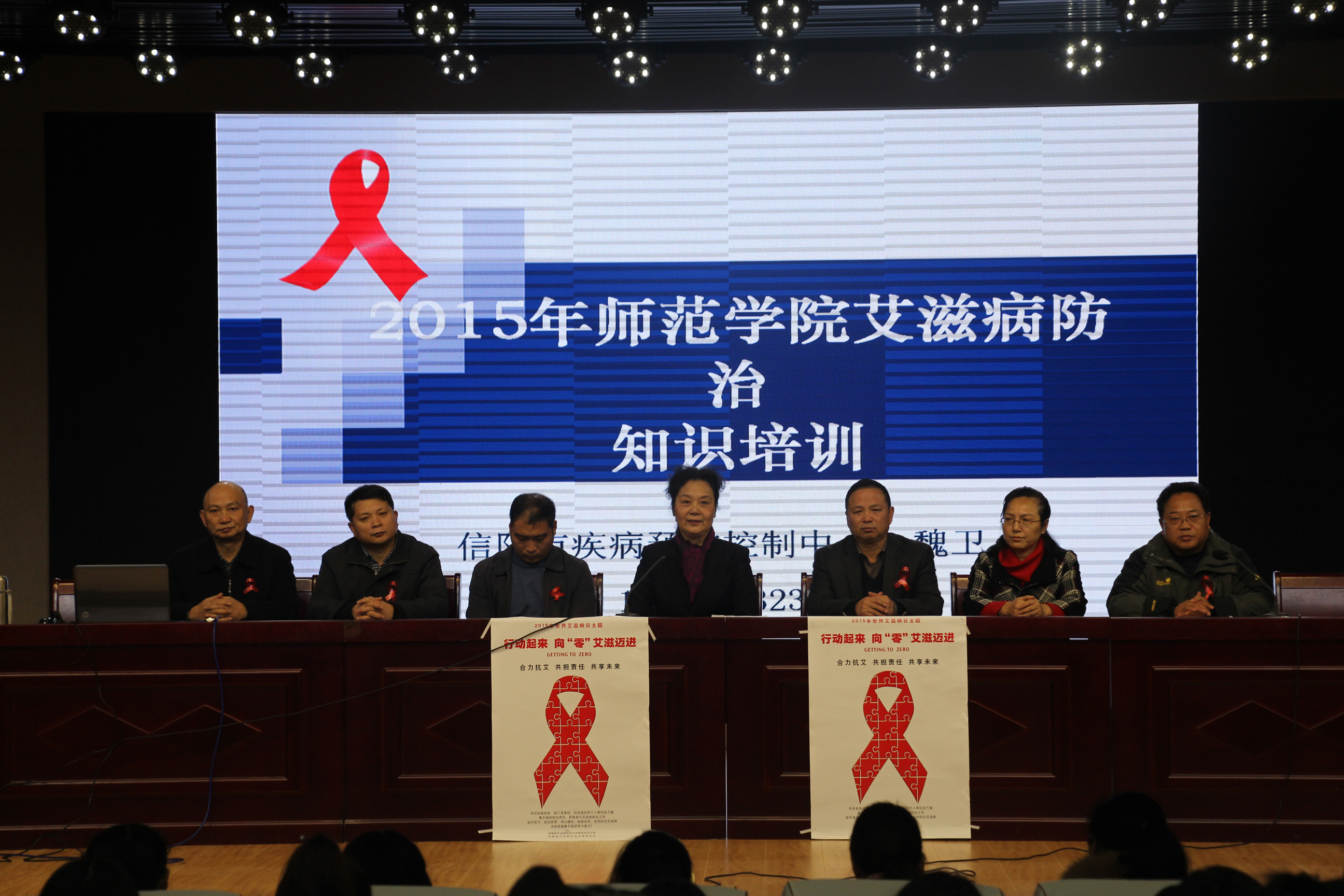 29日下午,活动举办方邀请信阳市疾病控制中心性病与艾滋病防治科科长魏卫教授在理科楼报告厅开展了艾滋病专题讲座。信阳市卫生与计划生育委员会副主任程伟、信阳市红十字会秘书长张孔华、云顶4008登录团委书记王建旭、云顶4008登录党委副书记赵东、校医院院长王晓霞以及校医院优秀工作者应邀出席此次讲座,与百余名同学共同聆听了讲座。