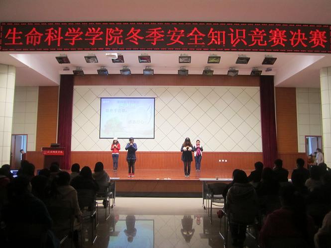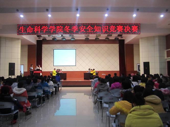 值冬季来临之际,为了加强安全知识教育。 11月25日晚,由云顶4008登录举办的冬季安全知识竞赛总决赛在逸夫楼多功能报告厅火热开赛。该院2012级班主任孙太红、学生会主席,校园文明纠察队副队长、中队长,公寓办组长以及该院生科协、青协、文通社负责人应邀出席并担任评委,与近300名同学共同观看此次比赛。