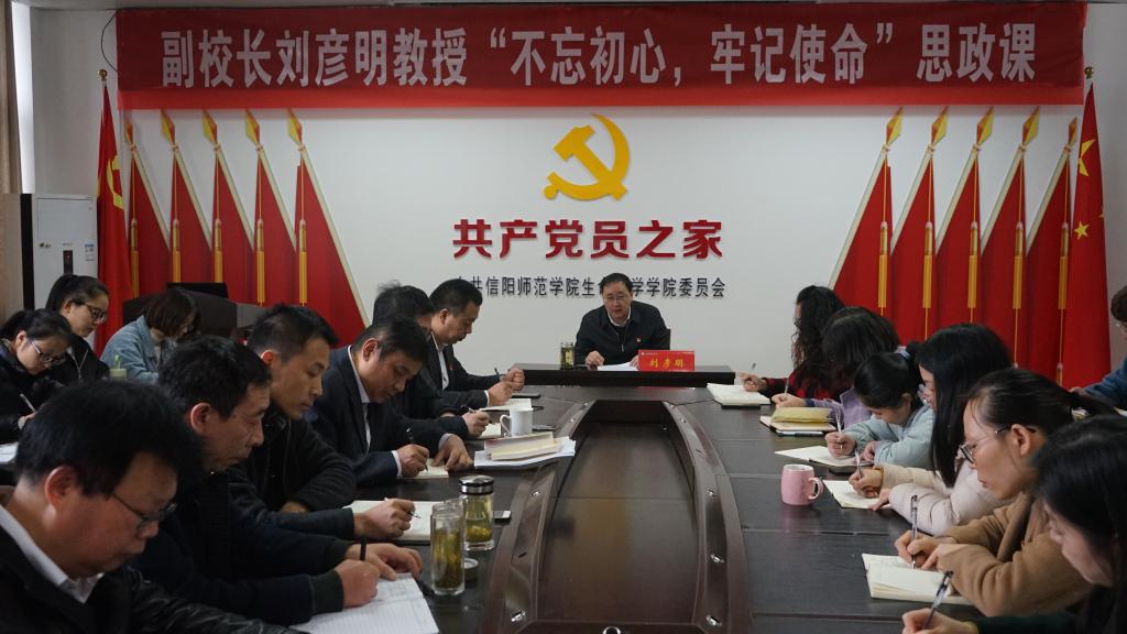 11月21日,根据学校“不忘初心、牢记使命”主题教育的工作安排,副校长刘彦明在生科楼412会议室,为云顶4008登录师生上了一堂题为“上好新时代思政课,培养合格人才”的思政课。学院领导班子成员、辅导员、党支部书记和部分师生代表聆听了思政课。