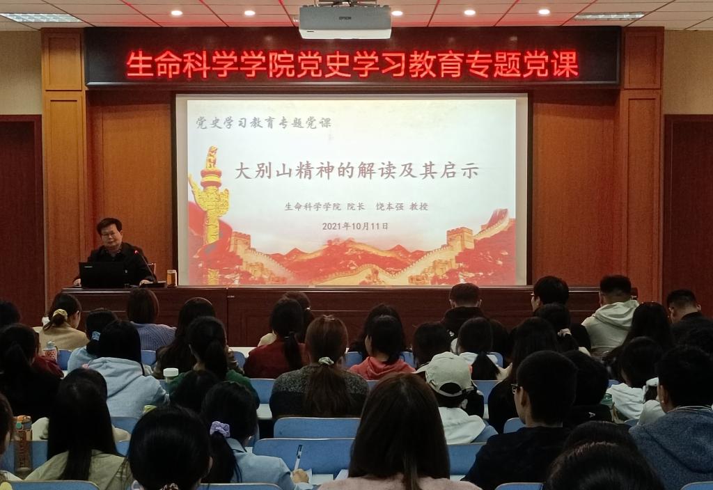 为进一步丰富拓展党史学习教育的内涵,深化党史学习教育,推动党史学习教育往深里走、往实里走,10月11日晚6点在生科楼414多媒体会议室,云顶4008登录院长饶本强以“大别山精神的解读及其启示”为题,带领全体辅导员、近百名学生党员在回顾大别山革命历史中感悟革命信仰,传承革命红色精神。党课由云顶4008登录副院长荆胜利主持。